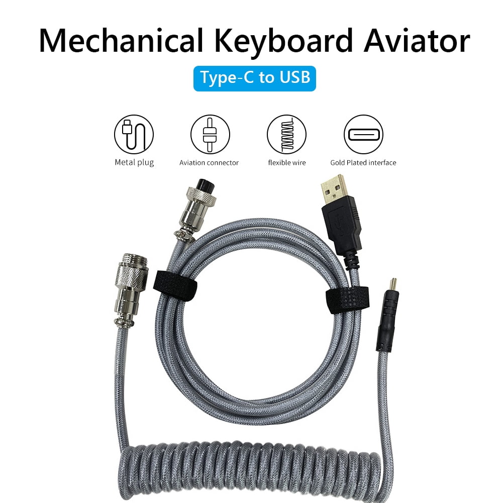 Vakind Mechanical Keyboard Aviator Cable Type C Usb Spring Wire Kit Silver Gray Walmart Com